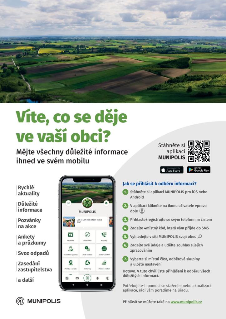 V aplikaci MUNIPOLIS se dozvíte dění a informace z obce.