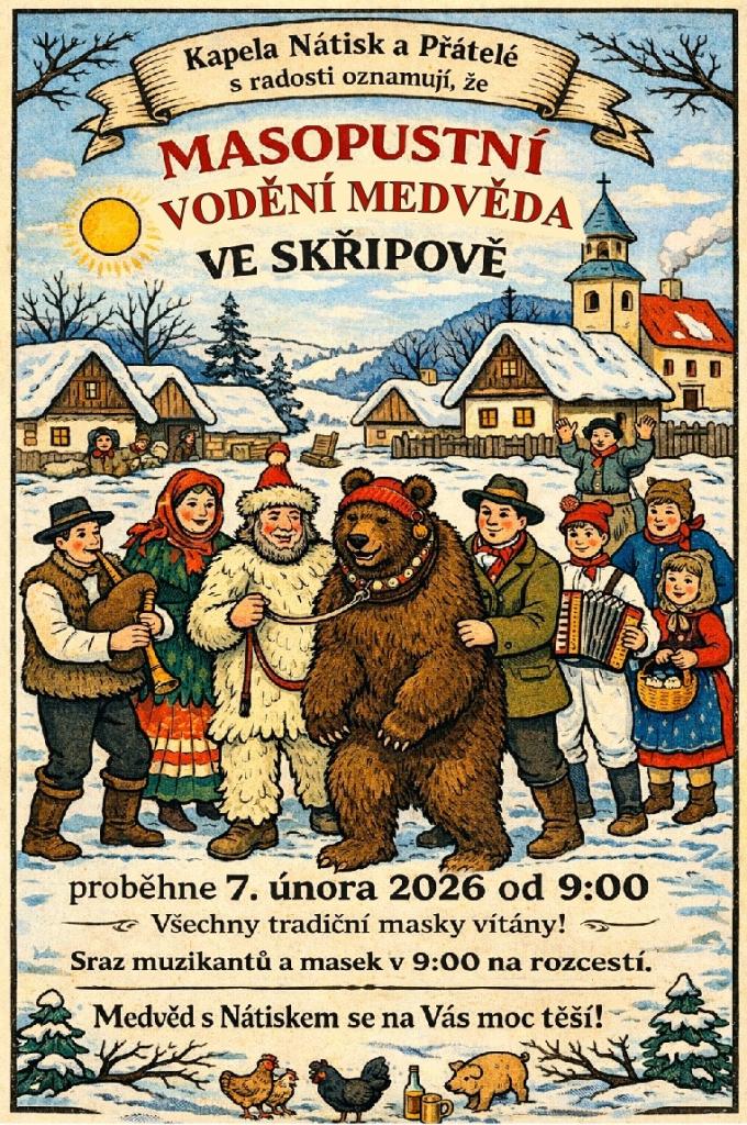 v sobotu 7. února bude masopustní vodění medvěda, a to i za aktivní účasti mladé generace Zahrádkářů. Děkujeme především naší Janě za skvělou a obětavou přípravu pokračování této lidové tradice.